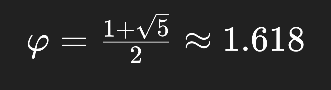 φ=1+521.618\varphi = \frac{1 + \sqrt{5}}{2} \approx 1.618