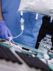 Khoa Dược: Dược sĩ lâm sàng kiểm tra tính tương hợp của các thành phần trong túi dịch và thực hiện pha chế trong môi trường vô trùng tuyệt đối (buồng sạch).