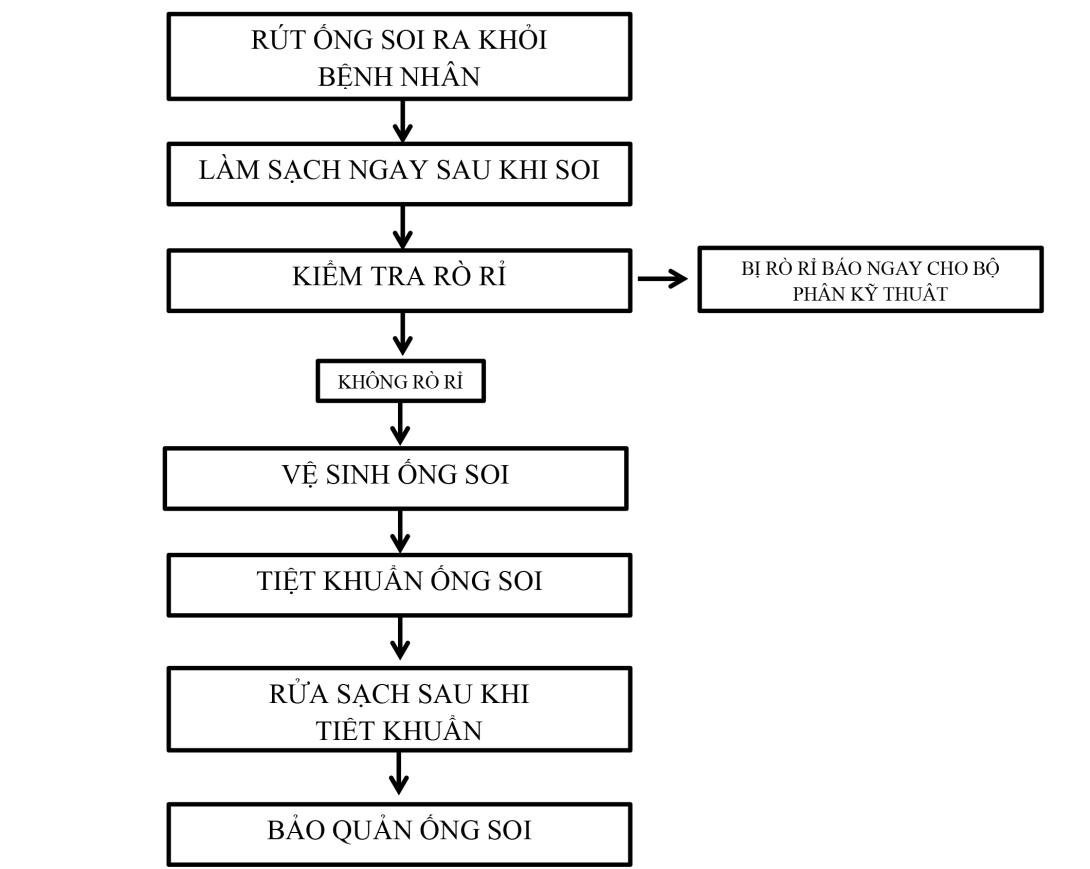 Làm sạch sơ bộ (tại phòng soi): Ngay sau khi rút ống ra khỏi bệnh nhân, nhân viên y tế lau sạch mặt ngoài và hút dung dịch làm sạch qua kênh thủ thuật để loại bỏ chất tiết, ngăn chặn sự hình thành màng sinh học (biofilm).